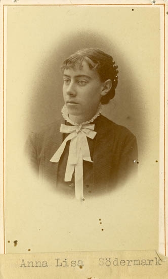 Text på kortets baksida: "Anna Lisa Södermark,f. 1819 d. 1882".