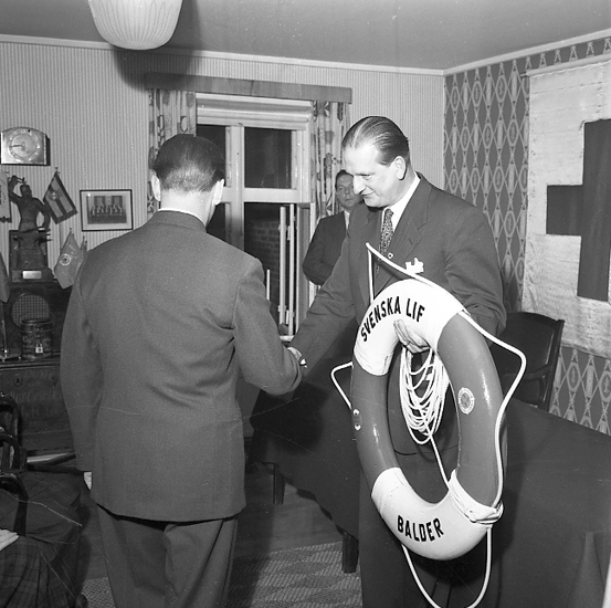 Enligt notering: "Överlämnande av livräddningsboj samt narkosövning Nov 57".