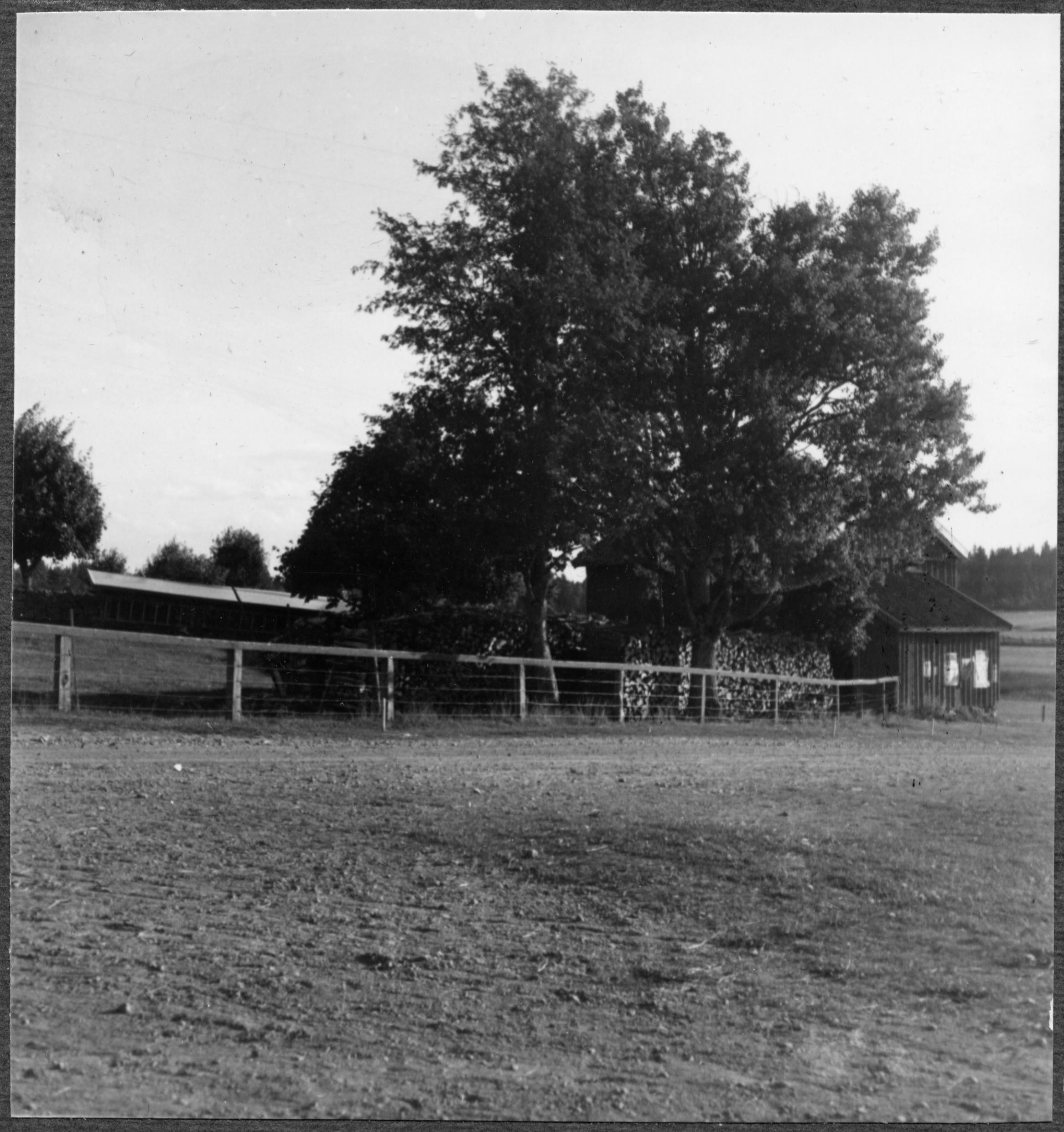 Kyrkplanen från nordöst mot sydväst med sockenmagasin.