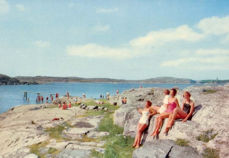 Tryckt text på kortet: "Grebbestad. Friluftsbadet."
