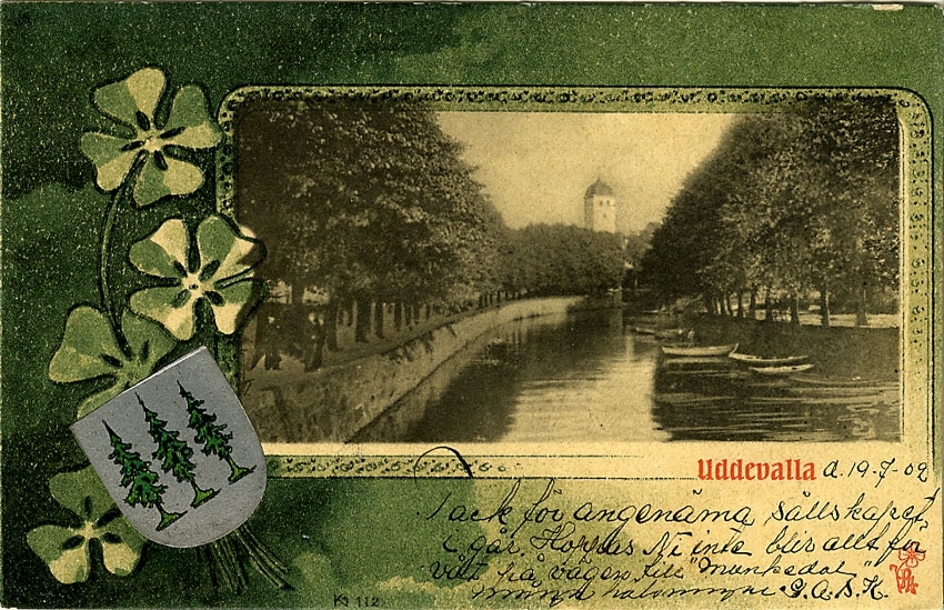 Titel: Tryckt text på vykortets framsida: "Uddevalla".