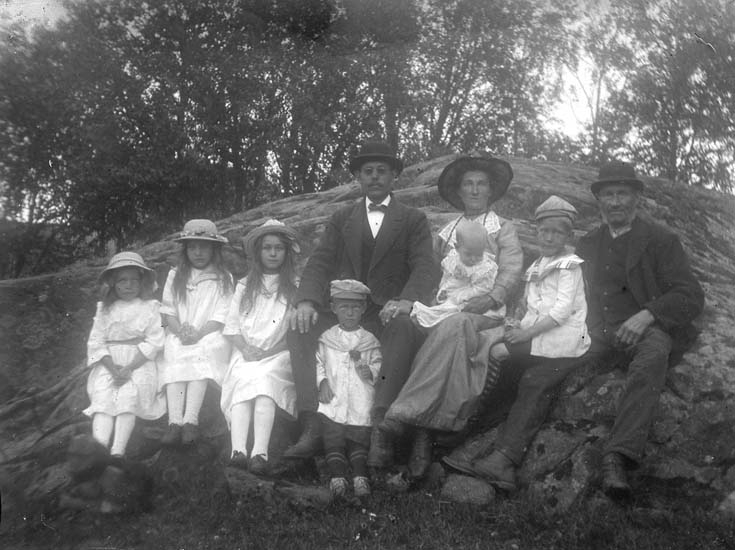 Enligt notering: "Tre vuxna, sex barn på en bergsknalle".