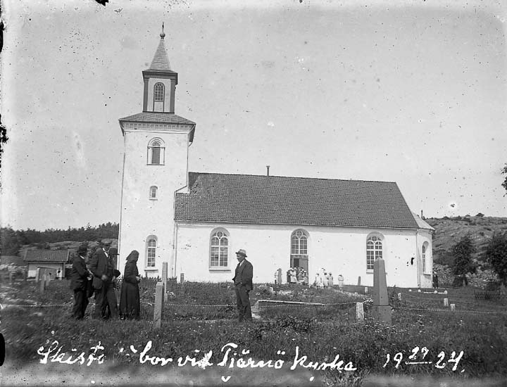 Enligt text på fotot: "Skistadbor vid Tjärnö kyrka 27/7 1924".