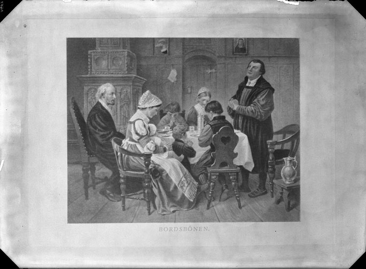 Enligt fotografens anteckningar: "Bordsbönen Martin Luther inlämnat av fru.....omkring år 1940".
