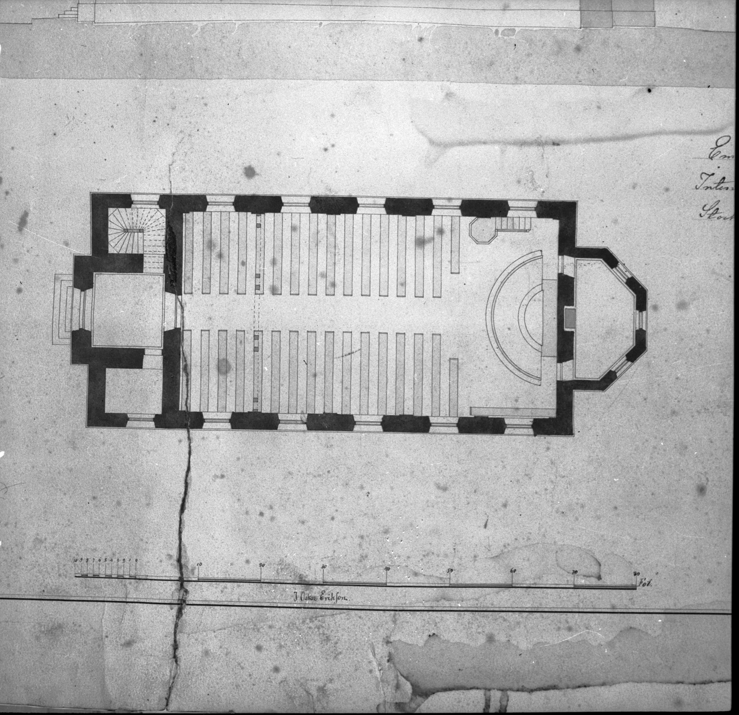 Förslag till planritning av ny kyrka. 1868. Repro.