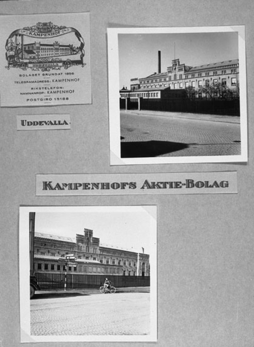 Text på albumbladet: "KAMPENHOFS AKTIE-BOLAG", "UDDEVALLA",