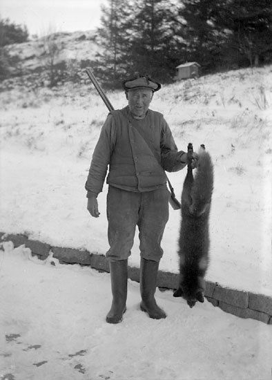 Enligt tidigare noteringar av Erik Karlsson: "Jägaren visar sitt byte. Gustav Stenman från Malmön".