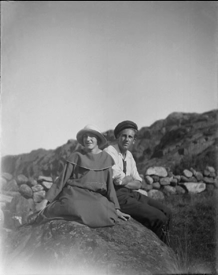 Enligt senare noteringar: "Tekla och Johan Börjesson vid stengärdesgård".
