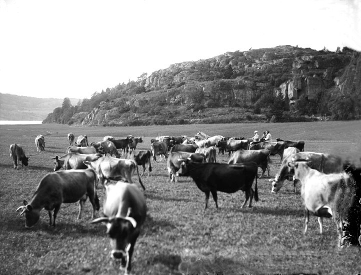 Enligt senare notering: "Grosshandlare N G Sörensen inspekterar sin djurbesättning åkande häst och vagn. Området är betesmarkerna vid Sjörits." (BJ)