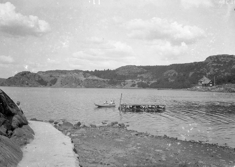 Uppgift enligt fotografen: "Uddevalla. Gustafsberg, flotte o roddbåt."