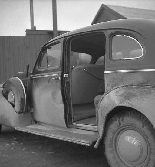 Text till bilden: "Plåtmanufaktur. Personbil. Polisbild. 1947.04.25".