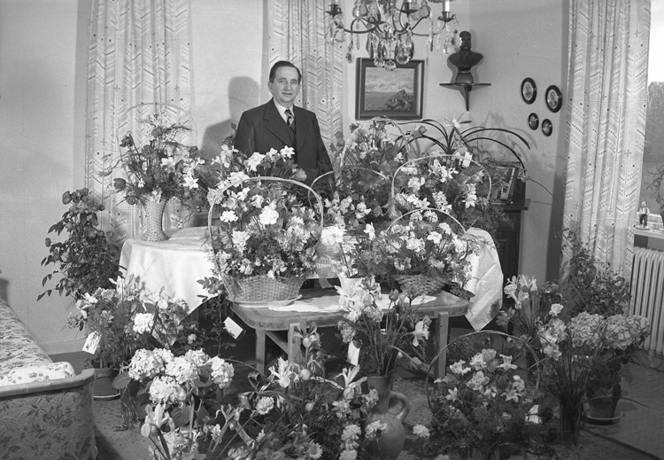 Text till bilden: "Paul Manula, Valbogsg. 26. 60år. 1950.04.26"