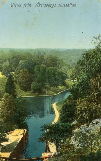 Vykort. "Utsikt från Åkersbergs slussaltan."