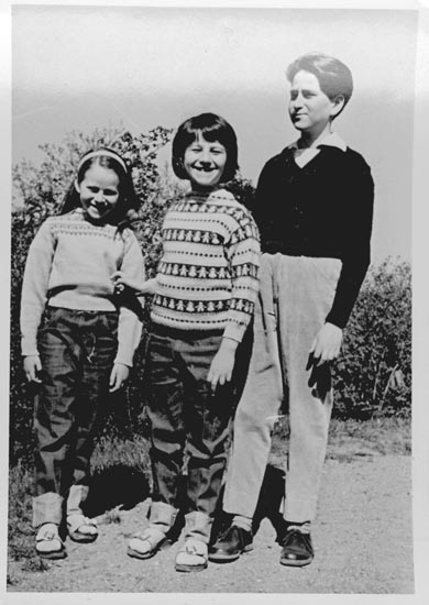 Syskonen Susanne Goldman Thörling, Jill och Peter klädda i stickade tröjor från Maratti