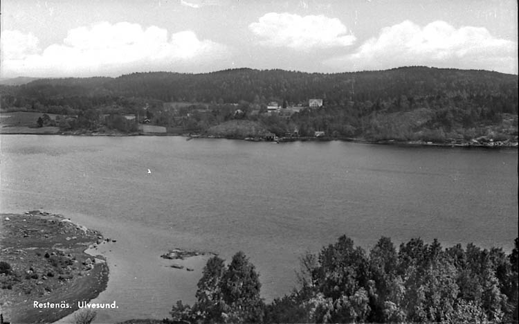 Enligt Bengt Lundins noteringar: "Restenäs. Restenäs från Strandön. Vykort KGH saknas Foto BL 1367 AB. Vykortsindustri Göteborg".