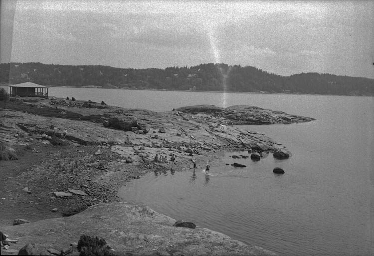 Enligt Bengt Lundins noteringar: "Ulvesund. Öns badplats med paviljong. Foto BL 1808".