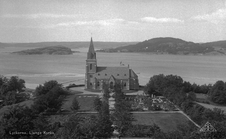 Enligt Bengt Lundins noteringar: "Lyckorna. Ljungs kyrka med segelbåt. Vykort TF 2037 BL 783 e".