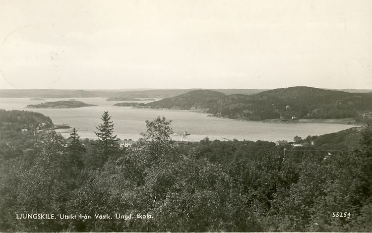 Enligt Bengt Lundins noteringar: "Utsikt från Västkustens Ungdomsskolan. Ljungskile".