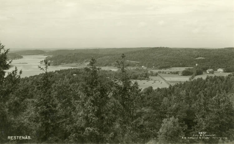 Enligt Bengt Lundins noteringar: "Utsikt mot norr. Restenäs. Skolan till höger.".