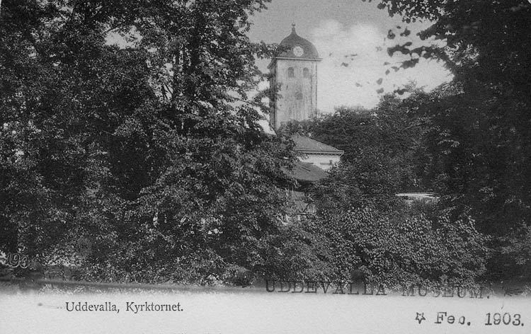 Tryckt text på bilden: "Uddevalla. Kyrktornet."