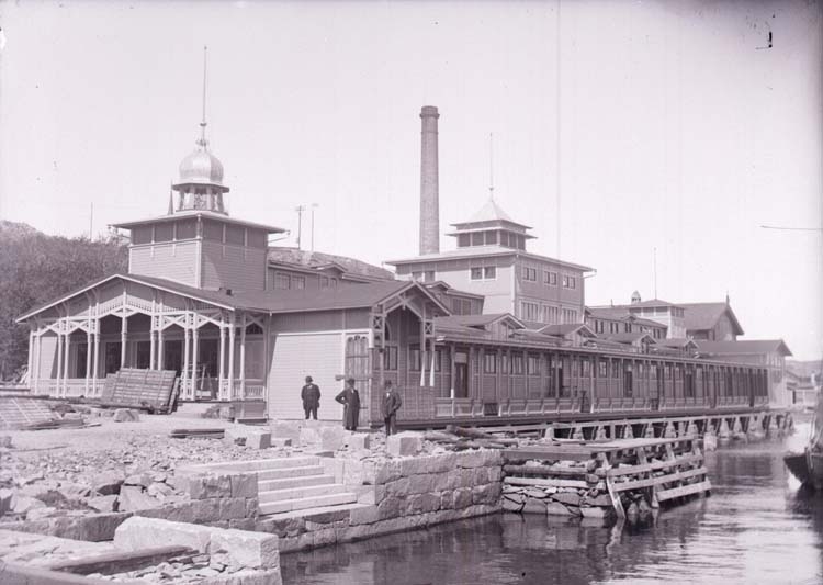 Enligt text som medföljde bilden: "Badhuset efter ombyggnaden, Lysekil. 19/5 1901, Ögonblick, sol, I 9, Sorey Rapidparaplanat."