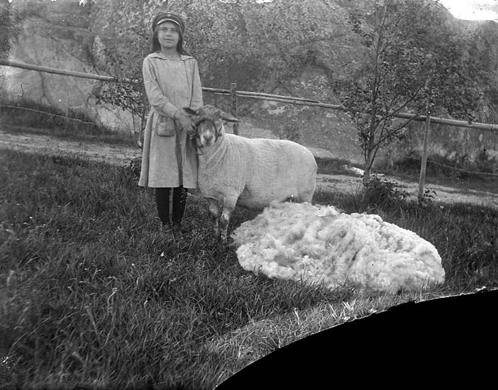 Enligt notering: "Flicka, får och ullhög".