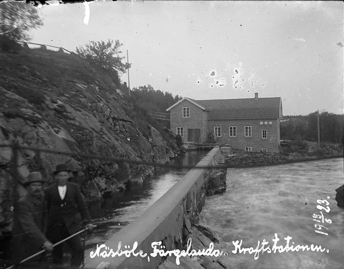 Enligt text på fotot: "Näsböle, Färgelanda. Kraftstationen 18/6 1923".