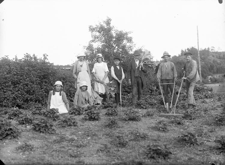"Gamla trädgårdsmästare Eriksson Ekebacken? med elever" enligt fotografens anteckningar.