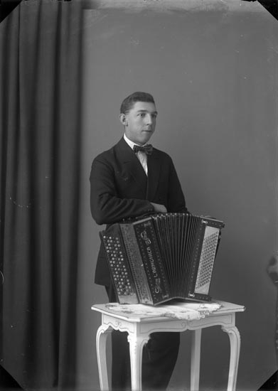 Enligt fotografens noteringar: "834. 1927. Dragspelare från Munkedal son till gamle Johannes Johansson."
