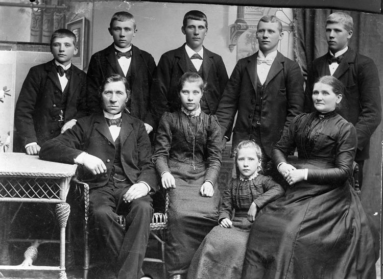 Text som medföljde bilden: "1952 29. Fru Hermans farfar o. farmor med barn. repr. Holmer?."