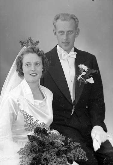 Enligt fotografens notering: "Brudpar Herr Arne Johnsson, Jonsborg, Kode".