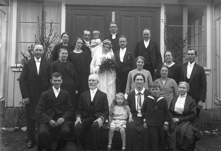 Enligt fotografens journal nr 6 1930-1943: "Dahl, Brudparet gr. på trappan Folkskolan Tjäderöd".