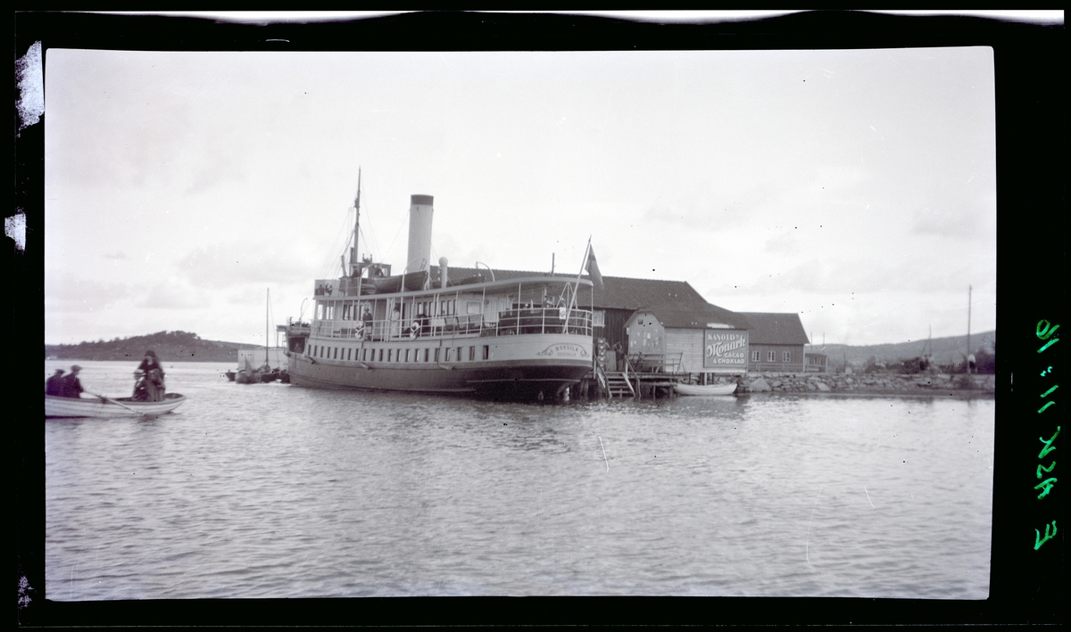 Enligt medföljande text: "Norum, Stenungsund "Borgila" vid ångbåtsbryggan".