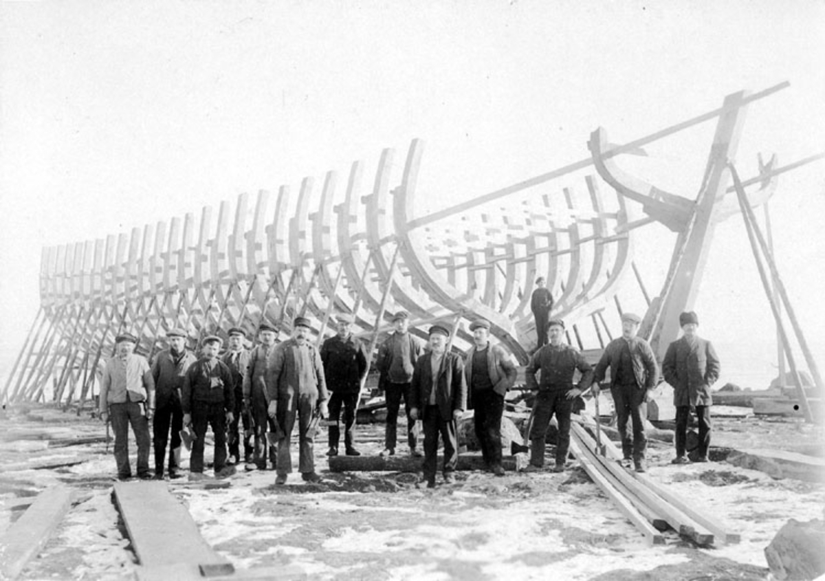 Skrivet på baksidan: Spantresning till 3 m. Skall Hedvig byggd på Dalskär 1918 av Alfred Olsson, samt arbetarna på varvet.