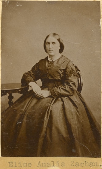Text på kortets baksida: "Elise Amalia Zachau, f. 23 jan. 1832 d. 3/4 1899".