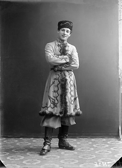 Enligt senare noteringar: "Ateljéfoto av skådespelare i rolldräkt, operett."