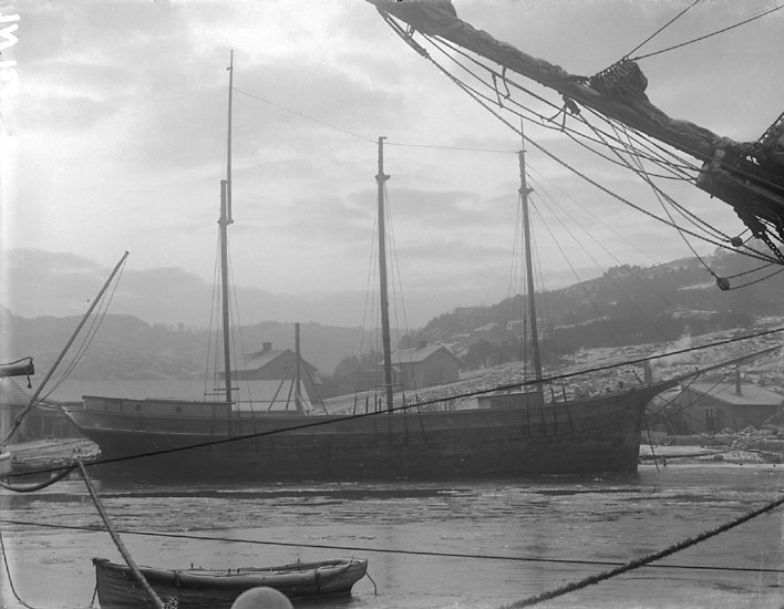Enligt senare noteringar: "Tremastad storsegelskonare vid varvet vid Lövåsberget, Uddevalla."