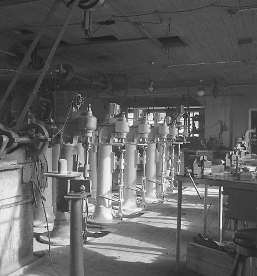 Text till bilden: "Bergmans mekaniska verkstad. Falsmaskiner i smedjan. 1945.09.30".
