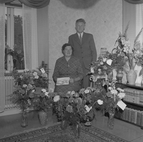 Text till bilden: "Fru Henriksson, Strandvägen 26. 50 år. 1956.09.22"