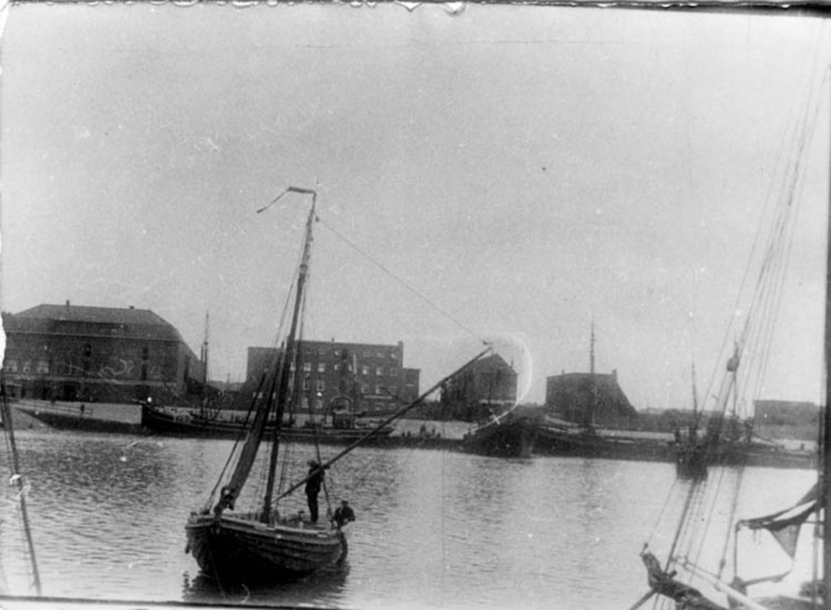 Skrivet på baksidan: Fiske med håv i Scheveningens hamn. Holland.