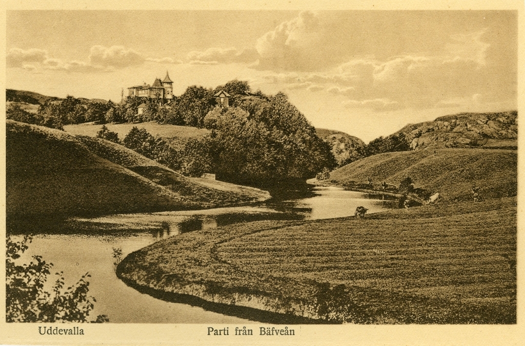 Text till bilden: "Uddevalla. Parti från Bäfveån".