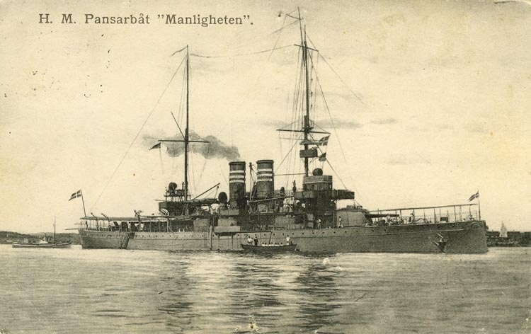 Notering på kortet: H. M. Pansarbåt "Manligheten".