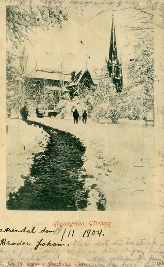 Notering på kortet: Göteborg. Hagakyrkan.