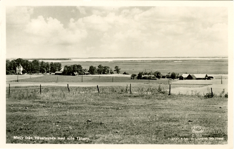Notering på kortet: Motiv från Väversunda med sjön Tåkern.