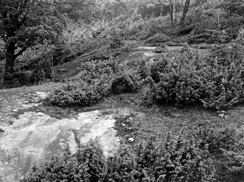 Enligt text: "1467. Hällristningsområdet Kleven Hamn - S. Torp - S. Ödsmål Mellangård. Foto fr. V. Den 17.6. -39. Åke Fredsjö".