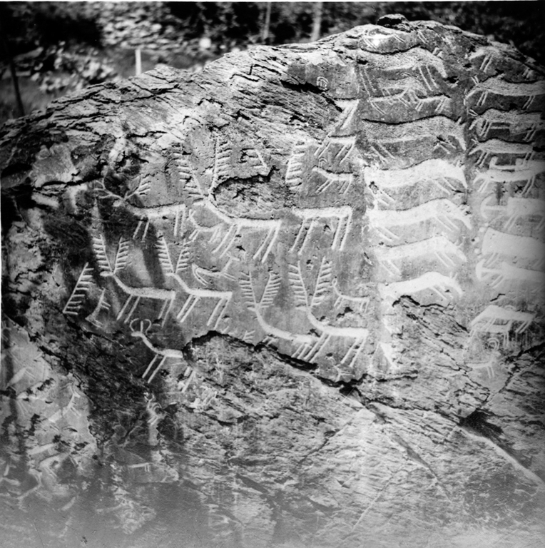 Enligt text: "Ristning i Cemmo i Val Camonica. Foto Å. Fredsjö".