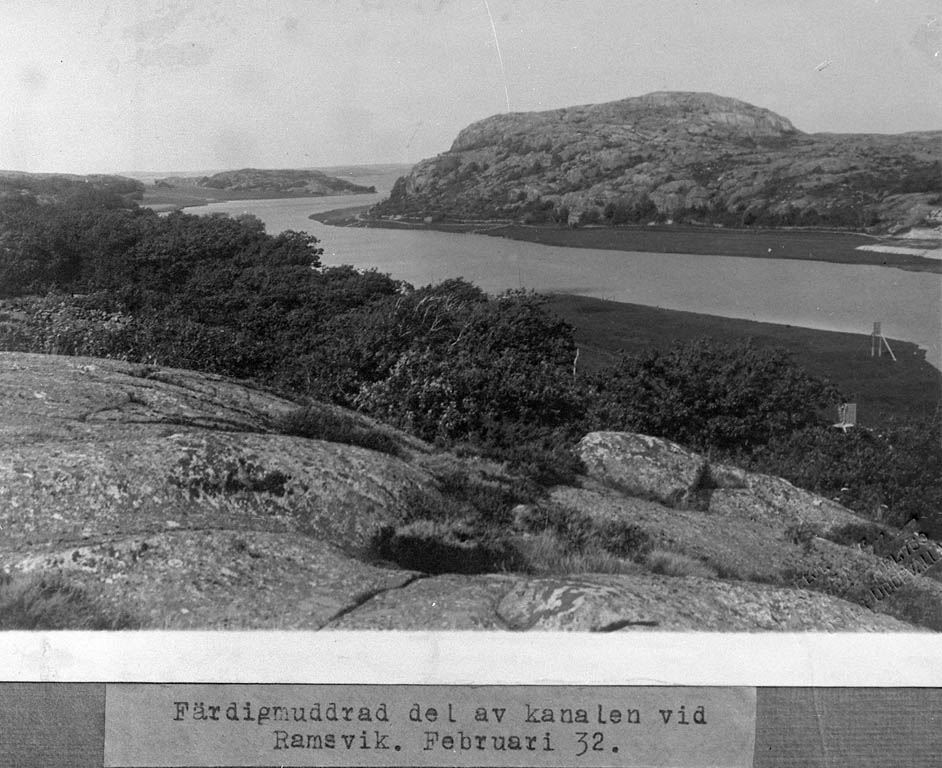 Färdigmuddrad del av kanalen vid Ramsvik. Februari 32. Byggandet av Sotekanalen