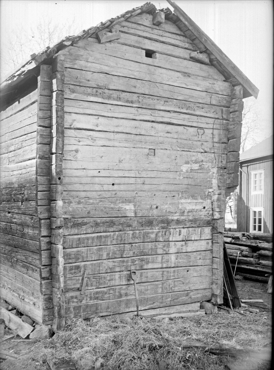 Loftbod - nu på friluftsmuseet Disagården - under nedmontering i Gränby, Björklinge socken, Uppland