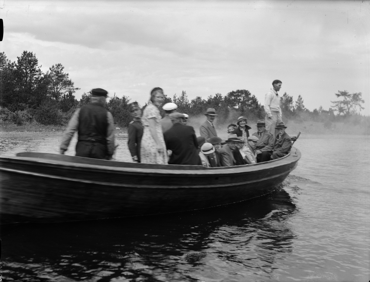 Upplands fornminnesförenings och Naturskyddsföreningens gemensamma utflykt, det grunda inloppet till Billhamn passeras, Älvkarleby