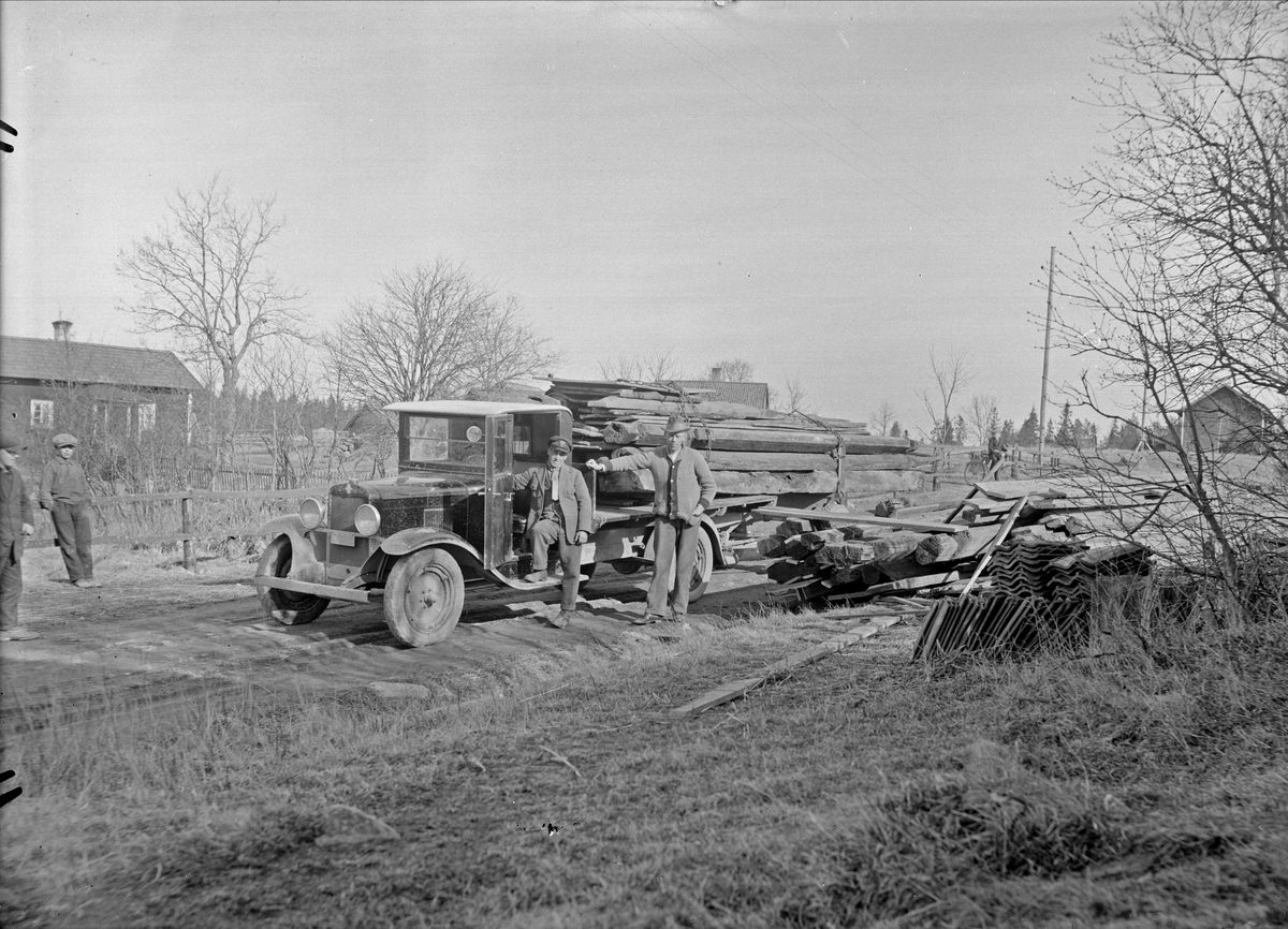 Lastbil med timmer sannolikt från loge i Gråmuren, Björklinge socken, Uppland